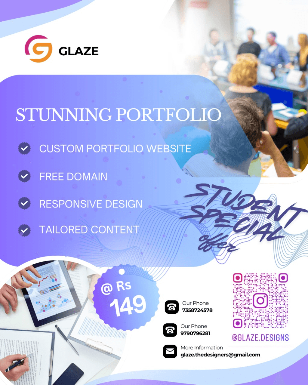 "Thank you for visiting Glaze! Based in Chennai, India, we are a premier graphic design service with over 2 years of experience, dedicated to creating impactful designs that elevate your brand."
